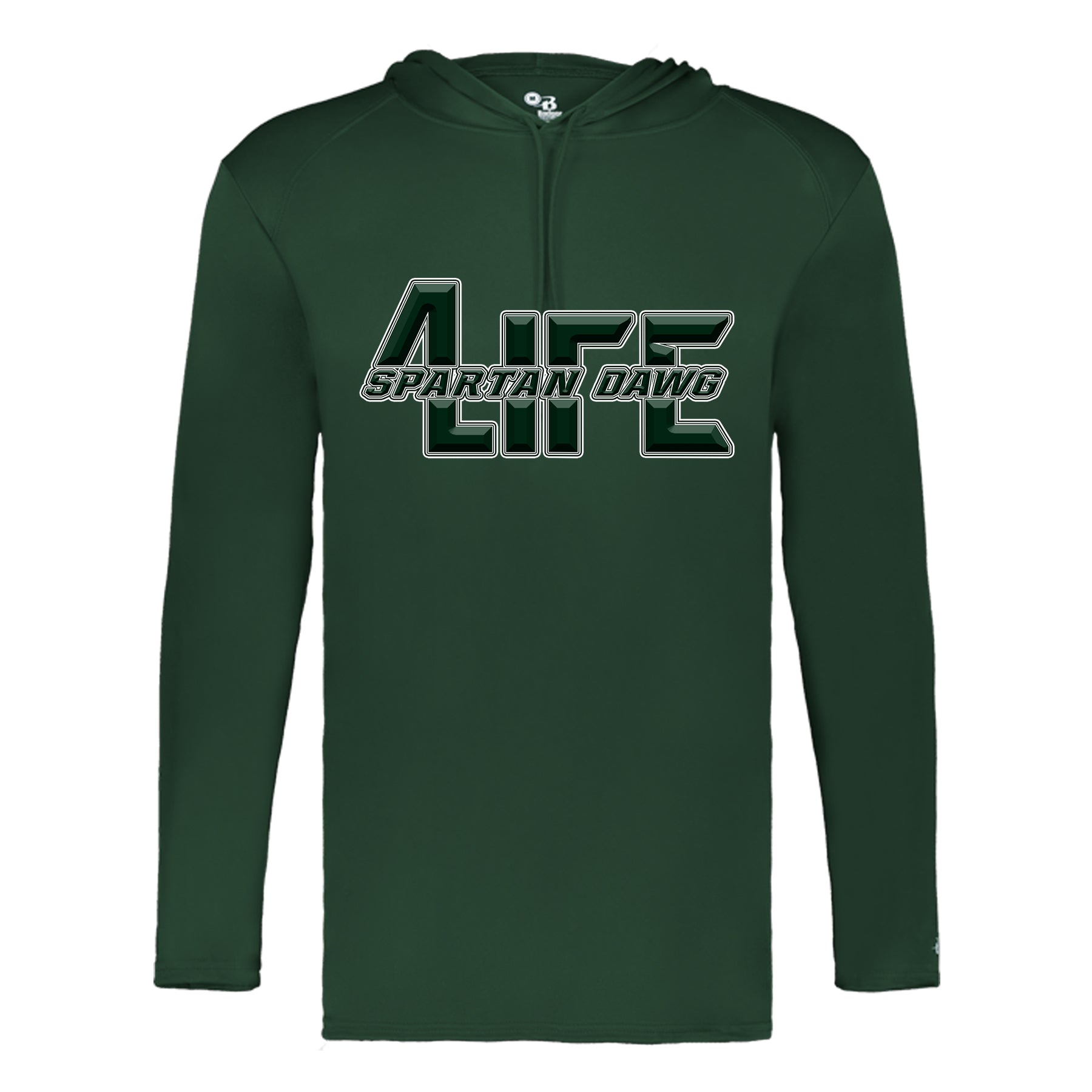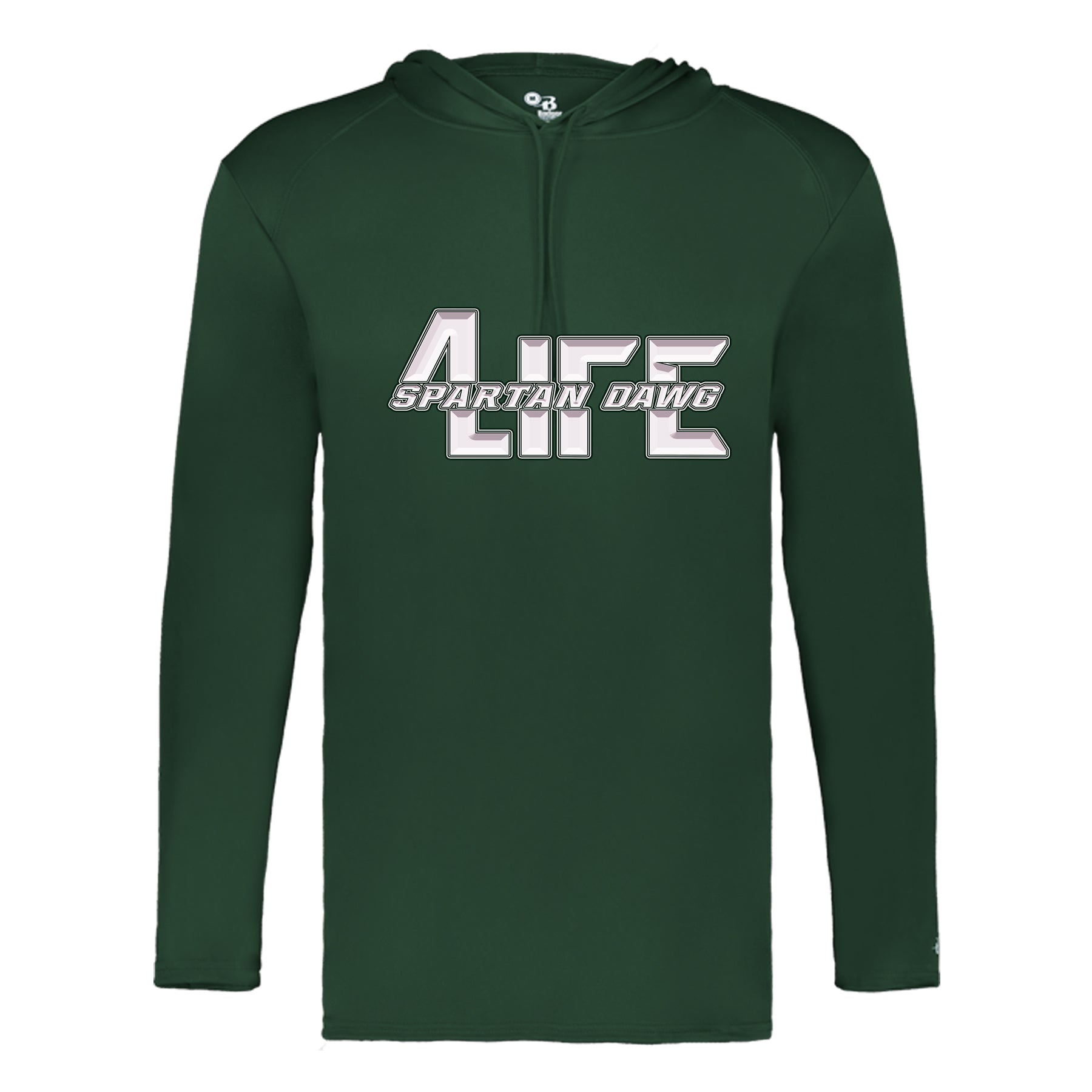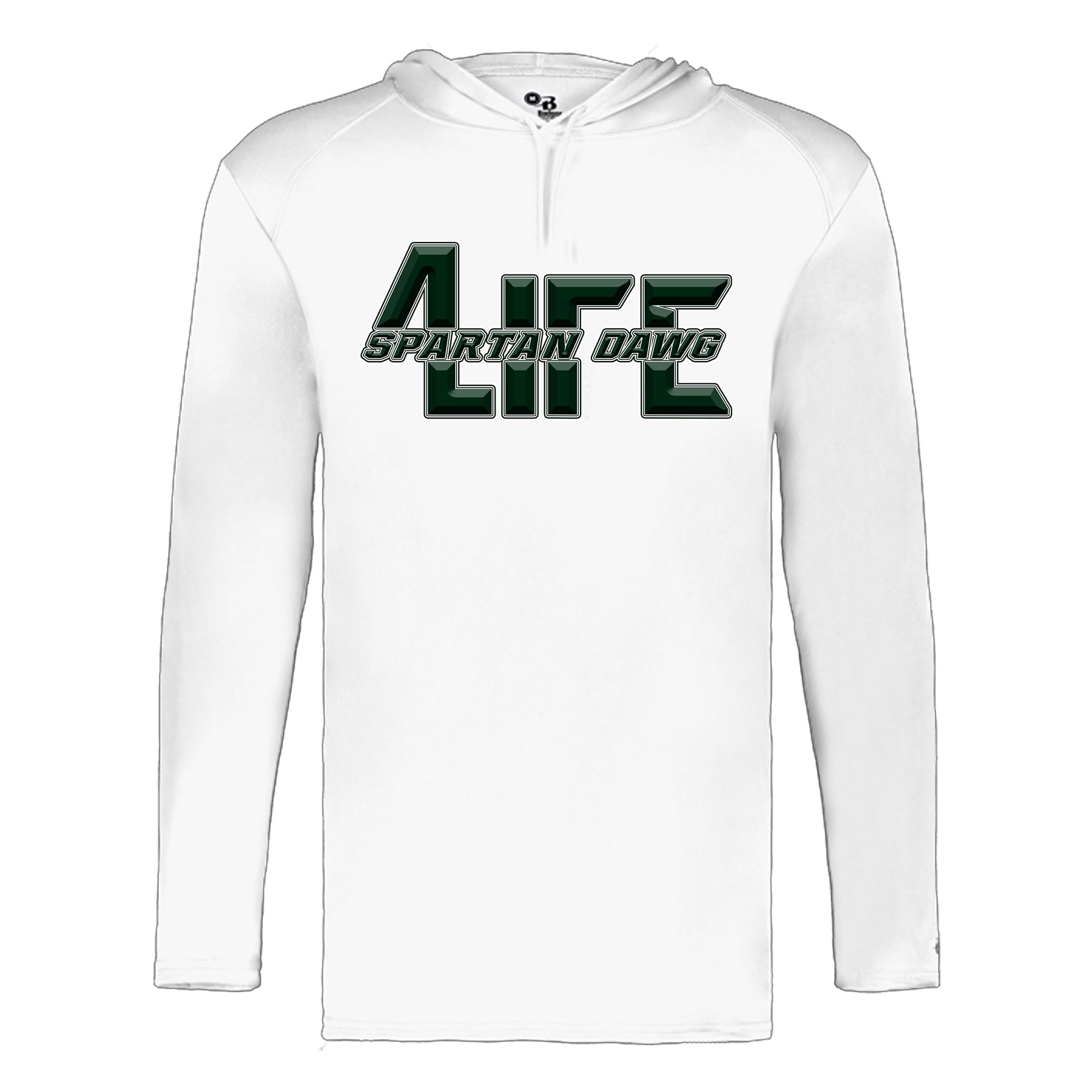 Rep your Spartan pride in style with the 4Life Spartan Dawg Hooded Tee. Crafted from lightweight, breathable fabric, this long-sleeve hooded tee is perfect for layering on game day, at practice, or while showing off your Spartan spirit around town. The sleek design features bold 4LIFE lettering with the “Spartan Dawg” banner across the chest, making it a standout piece for athletes, fans, and alumni alike.