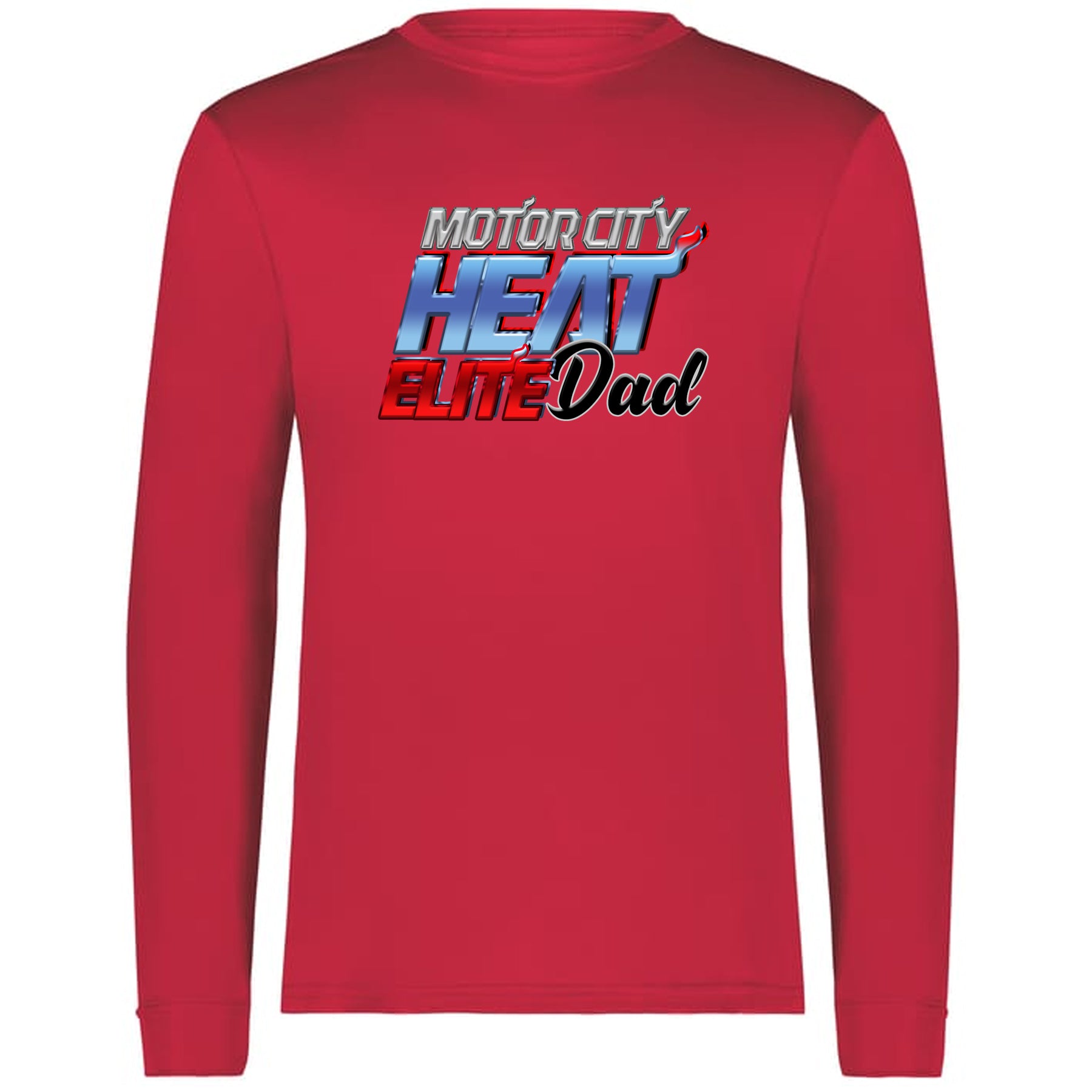 Available in Black, Columbia Blue, and Red, this long sleeve tee gives parents the perfect way to show support for their athletes and the Heat Elite family.