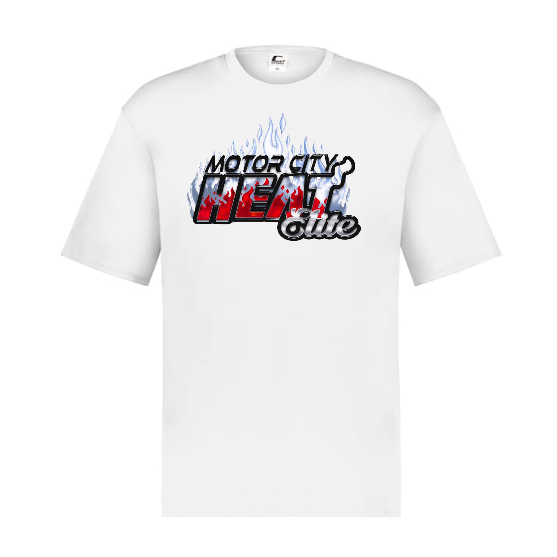 Bring the energy and show your pride with the Motor City Heat Elite Tee. Designed with bold fire-driven graphics, this shirt makes a powerful statement both on and off the court. The striking “Motor City Heat Elite” logo features blazing flames rising from the text, symbolizing strength, intensity, and team spirit.