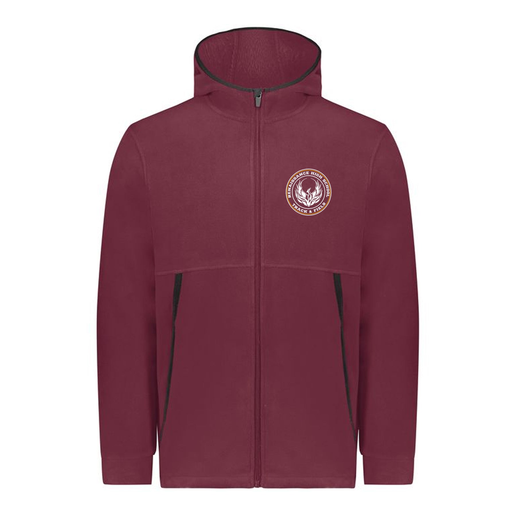 Stay warm while representing your team in classic style with the Renaissance High School Track & Field Embroidered Monogram Fleece Jacket. Designed for comfort and pride, this full-zip hoodie features a clean, athletic silhouette and a precision-stitched embroidered monogram logo on the left chest — showcasing school spirit with a professional, elevated look.